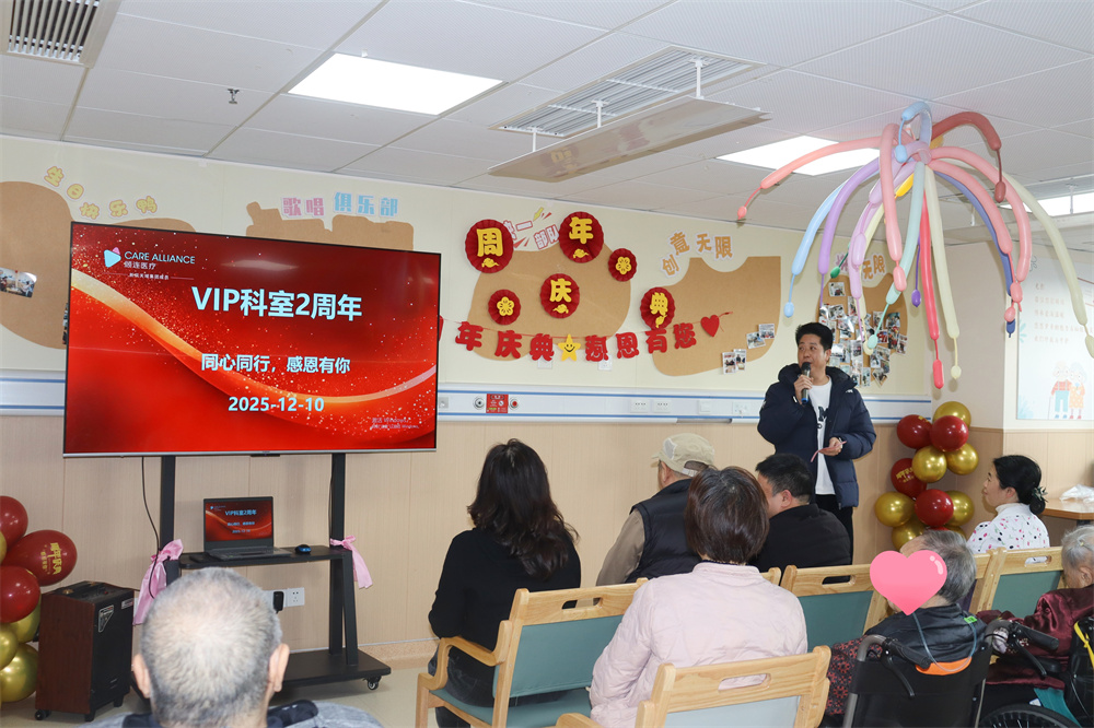 2025年12月10日,成都顾连天辰老年病医院VIP病区迎来了建区两周年的重要里程碑。为庆祝这一特殊时刻,科室精心策划了一场充满温情与喜悦的庆典活动,汇聚了医护人员、患者及家属,...详情>>